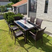 - Idealno za druženja: Sa šest stolica i prostranim stolom, ovaj set je savršen za porodična okupljanja, večere sa prijateljima ili opuštene popodnevne kafe na otvorenom.