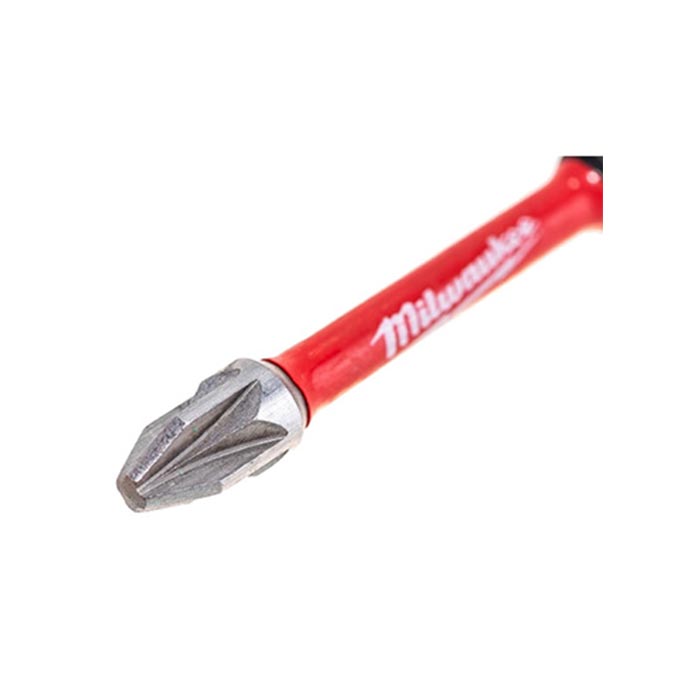 Geometrija SHOCK ZONE™ – dizajnirana za savijanje. SHOCK ZONE™ smanjuje naprezanje na vrhu, što rezultira manjim lomljenjem vrha. Kombinacija SHOCK ZONE™ dizajna i posebne toplotne obrade apsorbuje udarce i omogućava bitu da se savija. Precizno brušen laserski kaljen WEAR GUARD TIP™ vrh pruža najbolje uklapanje u glavu vijka i poboljšanu otpornost na habanje.Čelik izrađen po meri – Milwaukee® prilagođena metalna formula čini SHOCKWAVE™ bitseve otpornijim na udarce.