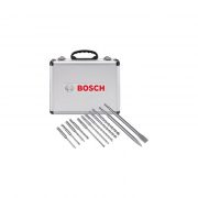 Boschev set za bušenje i štemovanje, odličan je set za bušenje i štemovanje pomoću rotacionih bušilica sa SDS-plus prihvatom. Кomplet uključuje špic od 250 mm, dleto i 9 burgija prečnika 5-12 mm. Aluminijumski kofer uključen u isporuku.