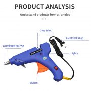 Pištolj za topljenje lepka od kvalitetne plastike sa aluminijumskim izlazom za lepak.
