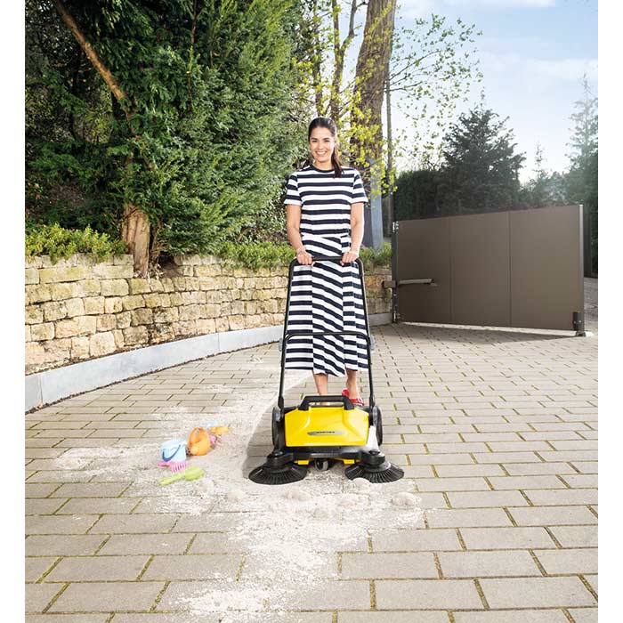 Latice cveća u proleće, pesak tokom leta, lišće u jesen ili so za posipanje puteva tokom zime: Efikasna i ergonomska mašina za metenje S 4 Twin od Karchera brine se za čišćenje tokom cele godine, rekordnom brzinom, oko kuće i u bašti. Sa svojim snažnim valjkom za metenje, 2 bočne metlice i širinom metenja od ukupno 680 milimetara, mete bez napora površine do 2400 m² na sat. Mašina prenosi smeće direktno u kantu za smeće od 20 litara. Dugačke čekinje bočne metlice služe za temeljnu čistoću do same ivice. Kontinualno podesiva ručka za guranje može se optimalno prilagoditi prema telesnom rastu korisnika. Zahvaljujući korišćenom bajonetnom priključku, pri podešavanju visine ne može se više izgubiti nijedan šraf. Ova mašina za metenje po potrebi se bez saginjanja može kompletno sklopiti, jednostavno pritiskom na gazište na ramu, i nositi za ručku – za odlaganje koje štedi prostor. Jedinstveno postavljanje bočne metlice bez alata. Mašina za metenje tako je odmah spremna za rad. Rezervoar za smeće može lako da se izvadi i da se odloži i isprazni bez dodira i prljanja.