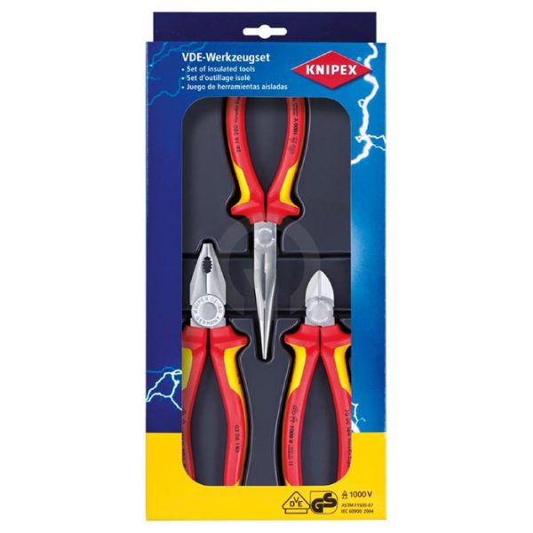 Knipex set klešta VDE 3/1 00 20 12 1177704 sadrži tri važna para klešta za držanje, sečenje, pozicioniranje i povlačenje
