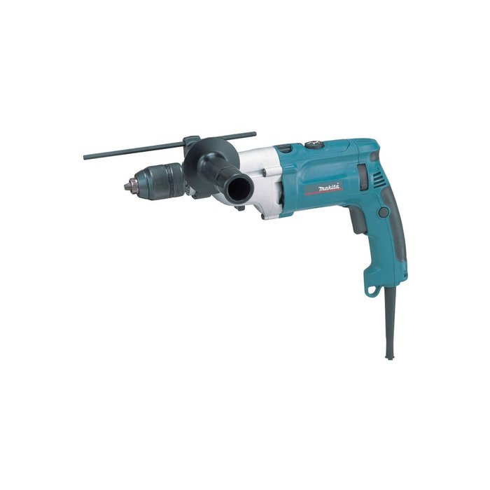 Makita bušilica HP2071 udarna bušilica sa izdržljivim i robusnim aluminijumskim reduktorskim kućištem. Najbolja moguća ergonomska drška za radove sa odvijanjem. Reverzibilni sistem, bez smanjenja brzine motora. Brzostezna glava omogućuje lako postavljanje i uklanjanje umetka.
