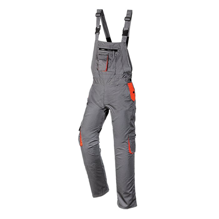 Radni polukombinezon br. 56, modernog izgleda sa dosta praktičnih džepova, 65% poliester i 35% pamuk, 235 g/m2, sive boje sa narandžastim detaljima. Najčešće se koristi u građevinskoj industriji, prilikom transporta, u proizvodnji, u slobodno vreme, itd..
