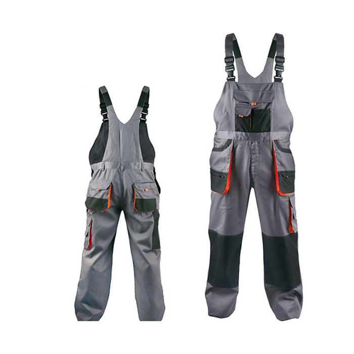 Polukombinezon Fridrich Siva boja broj 62, proizveden od 35% pamuka i 65% poliestera, 235 g/m2, sa dosta praktičnih džepova uključujući i džepove za umetanje štitnika za kolena, dizajniran u kombinaciji sive i crne boje, poseduje Oxford poliester ojačanja na mestima izloženim većem habanju.