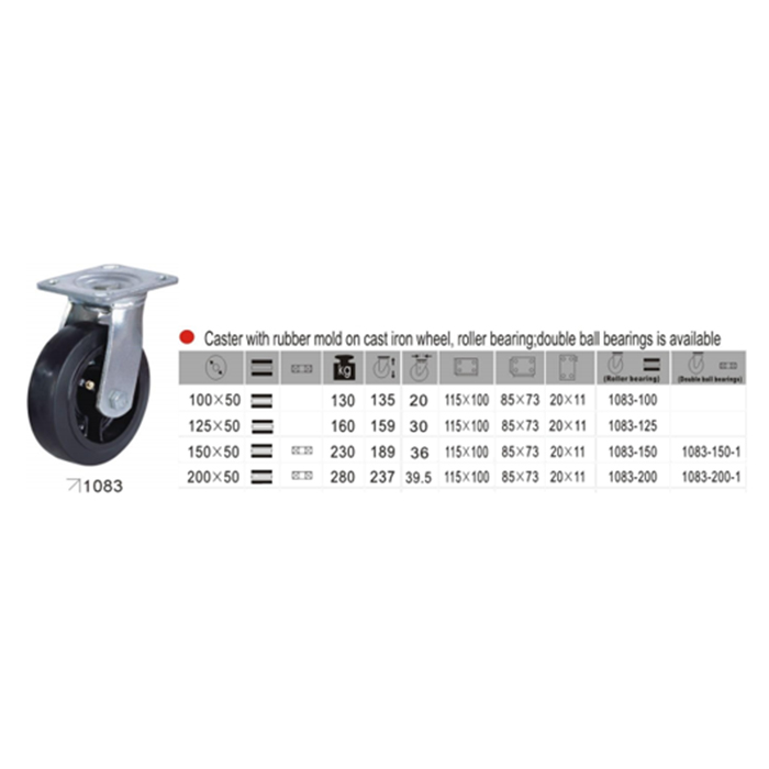 Točak okretni Fi200 A1083 povećane nosivosti  do 270Kg, crna guma