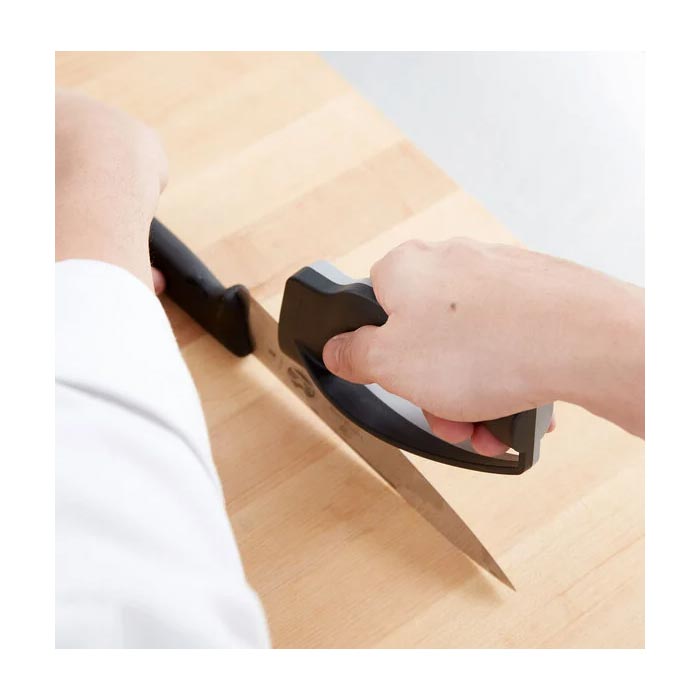 Victorinox oštrač noževa 7.8715 brzo, lako i bezbedno oštri svaki nož sa ravnim ivicama u vašoj fioci. Do najboljeg preciznog sečenja pomoću našeg oštrača za noževe, koji je ergonomski dizajniran za najbezbednije moguće rukovanje. Mehanizam za oštrenje ovog komada sastoji se od ploča u obliku slova V formiranih od karbidnog metala. Ploče su postavljene pod optimalnim uglom unutar spoljne strukture dizajna. Pošto se oni mogu okretati tokom životnog veka oštrice, može se osloniti na to da će svojim korisnicima pružiti godine službe.